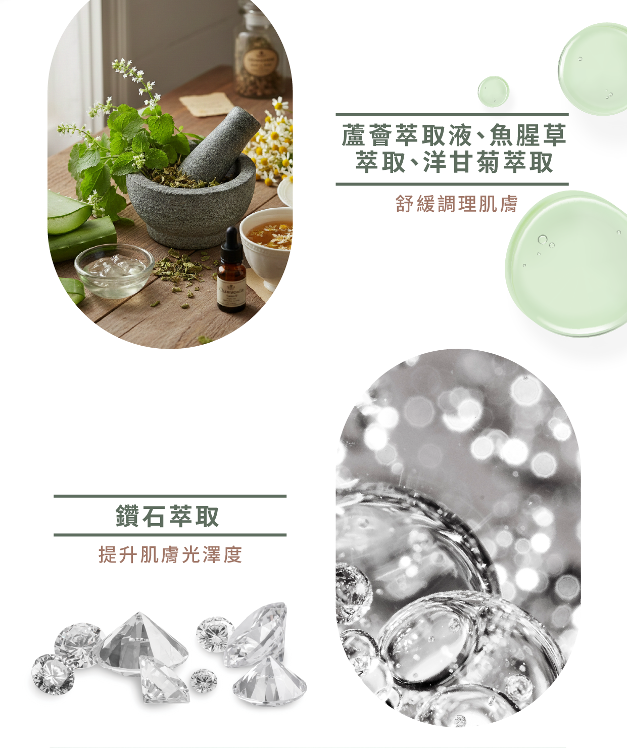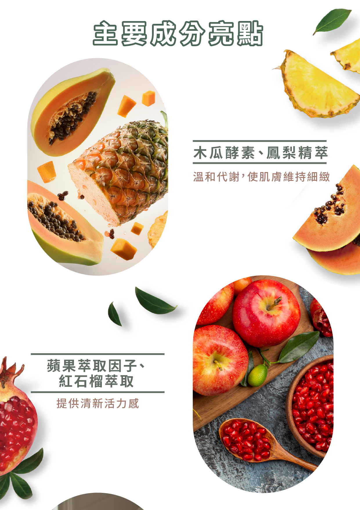 主成份:木瓜酵素、蘋果萃取因子、紅石榴萃取、山布枯控油因子、蘆薈萃取液、鳳梨精萃、魚腥草萃取、洋甘菊萃取、鑽石萃取。