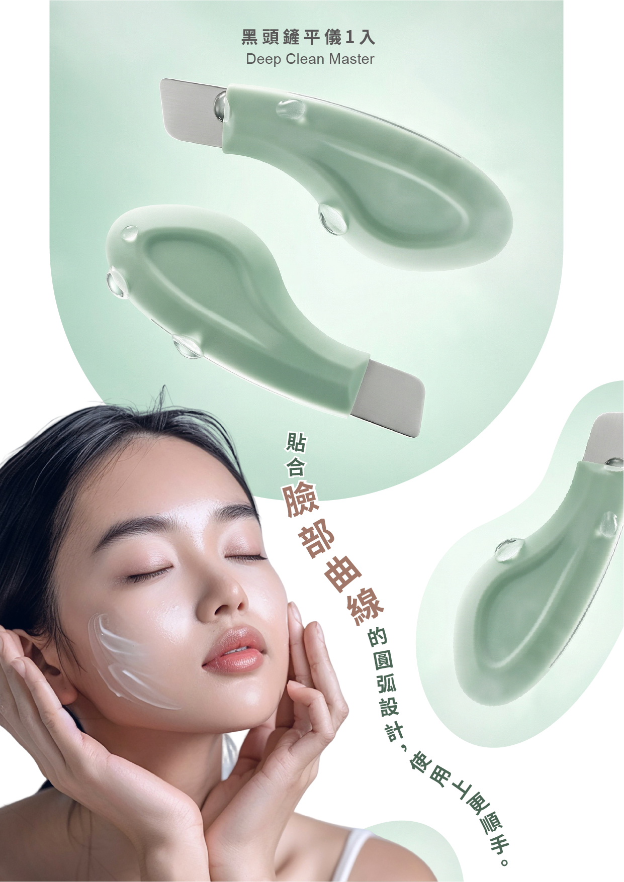 用途:人體工學圓弧形狀方便使用,搭配清潔產品使用能夠有效將粉刺去除。